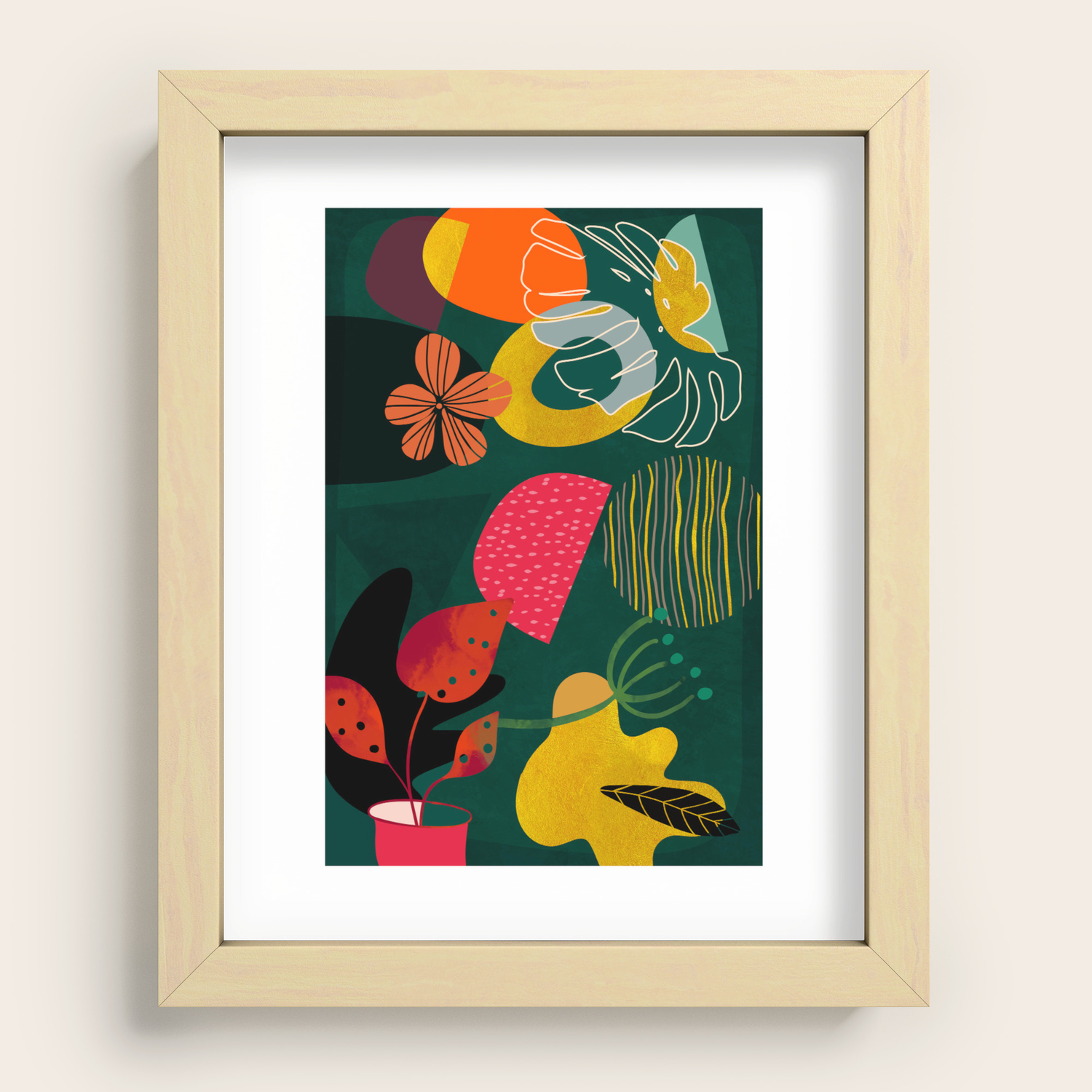 Mid Century Shapes Garden Party 3 Recessed Framed Print By Ana Rut Bre Fine Art Society6