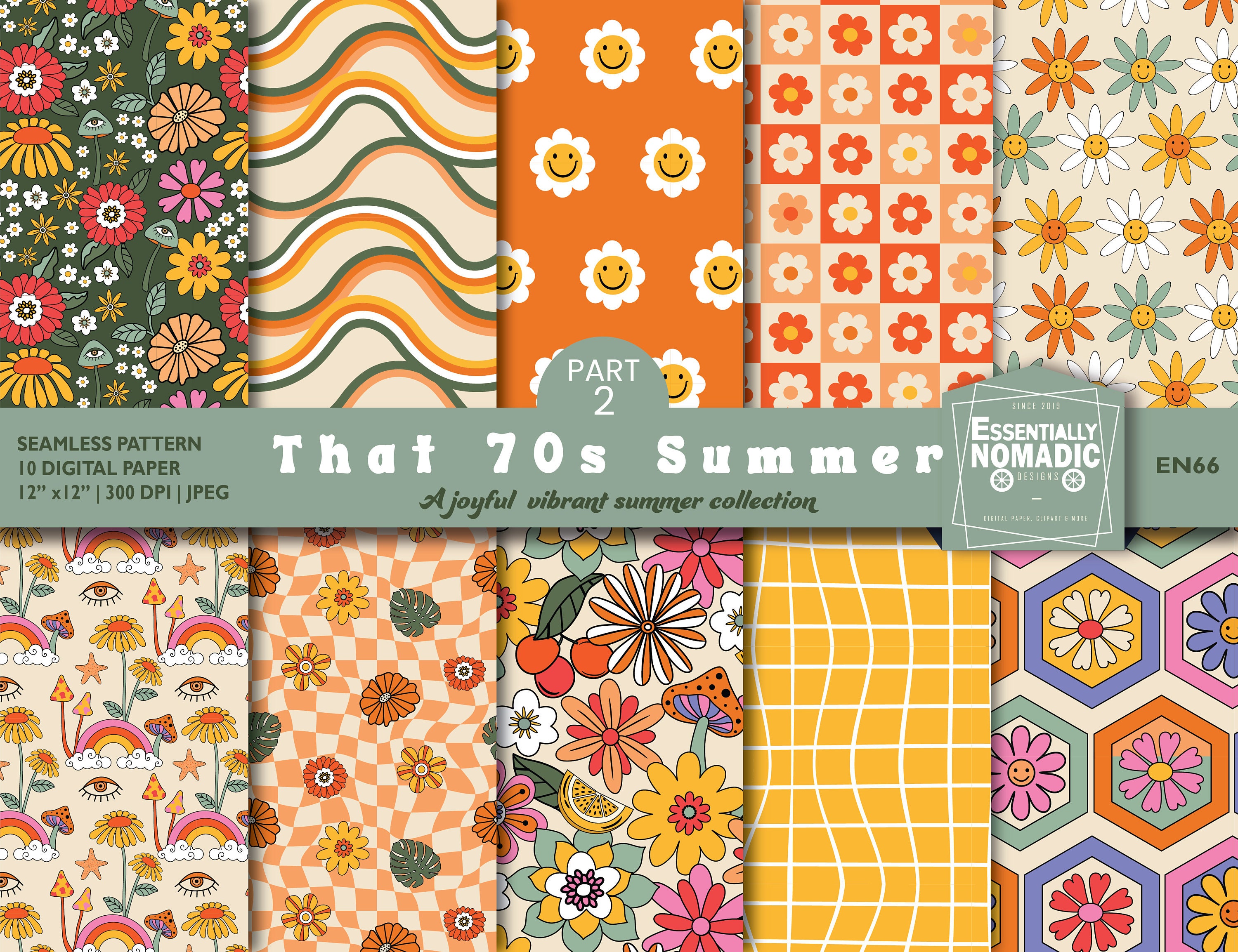 70s Retro Digital Paper Pack Floral Pattern Summer Digital Etsy Norway